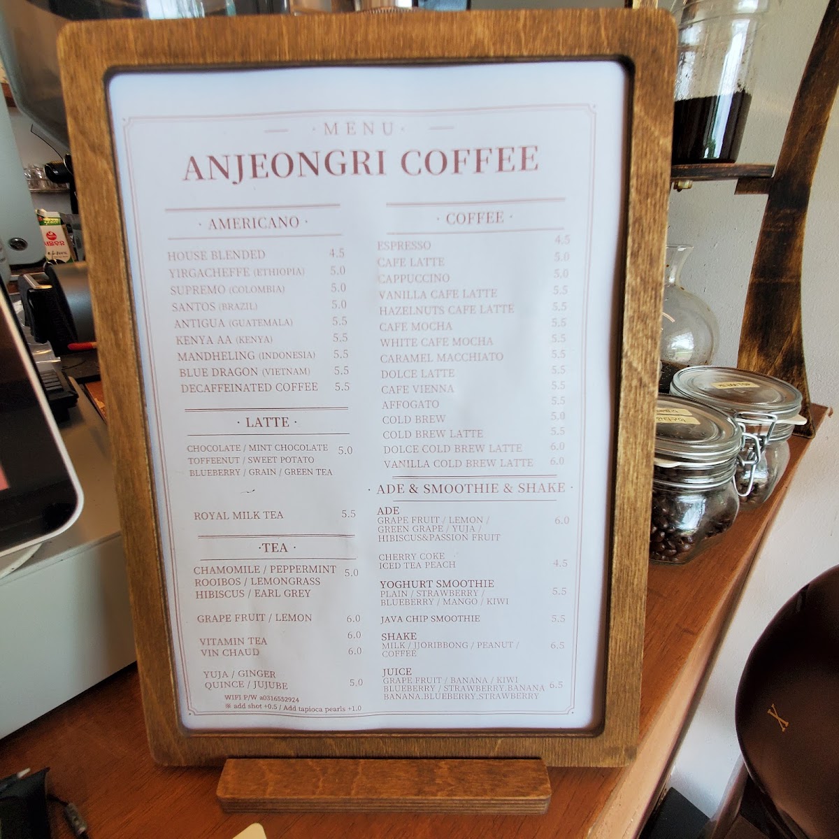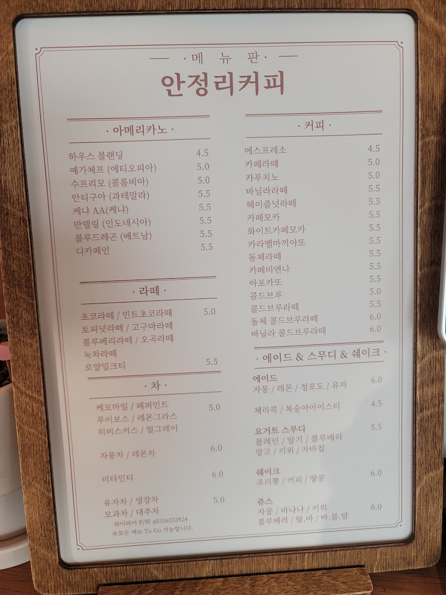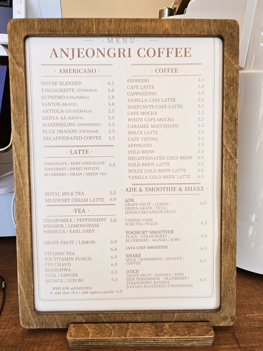 Anjeongri Cafe Menu